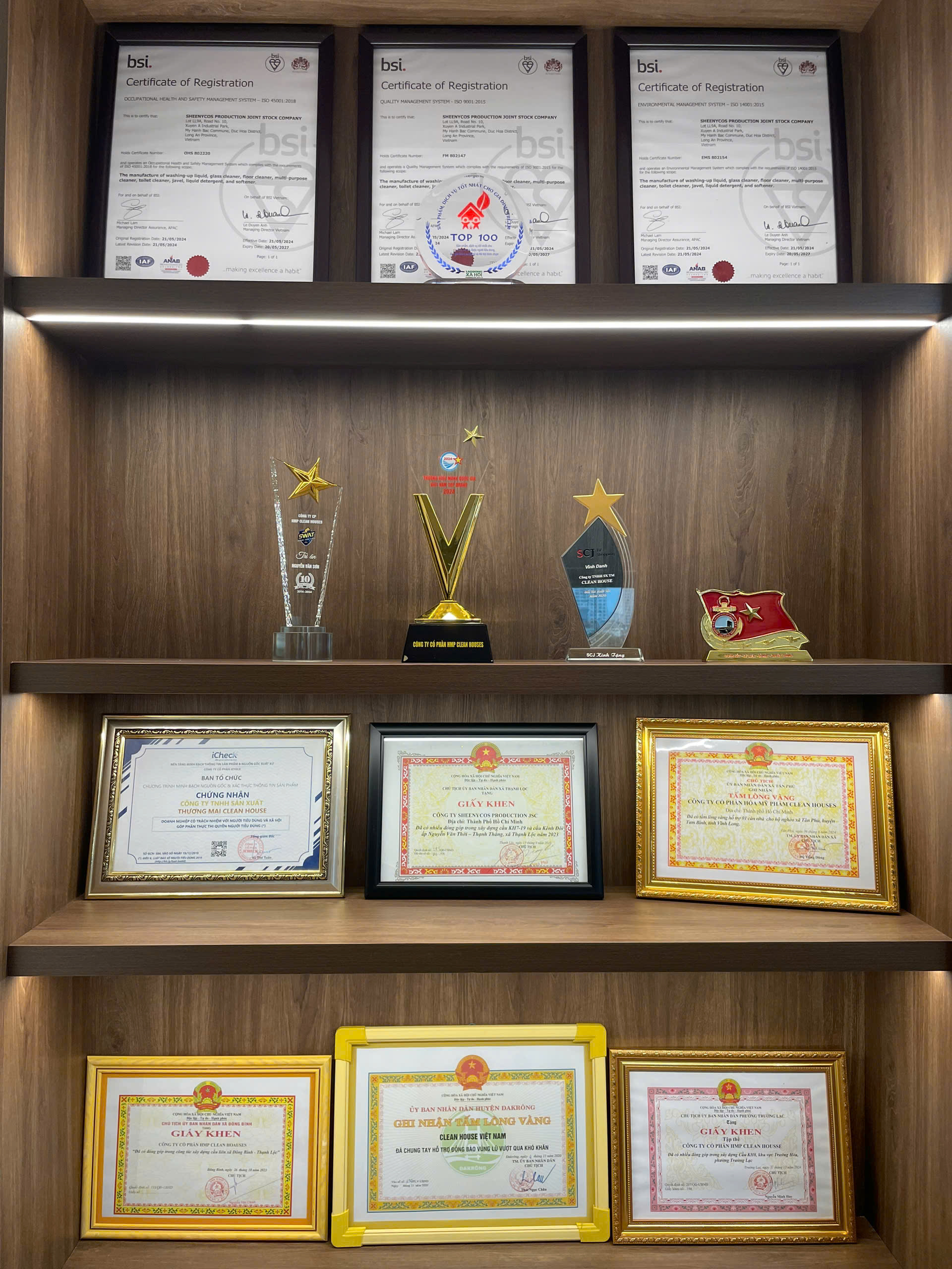 Bên cạnh sự công nhận về quy trình kỹ thuật, Sheenycos cũng vinh dự được người tiêu dùng và các tổ chức uy tín bình chọn vào Top 50 Thương hiệu – Nhãn hiệu nổi tiếng Quốc Gia. Giải thưởng này là nguồn động viên to lớn, khẳng định vị thế của Sheenycos trên thị trường, đồng thời là động lực để chúng tôi tiếp tục cải tiến và vươn xa hơn nữa.